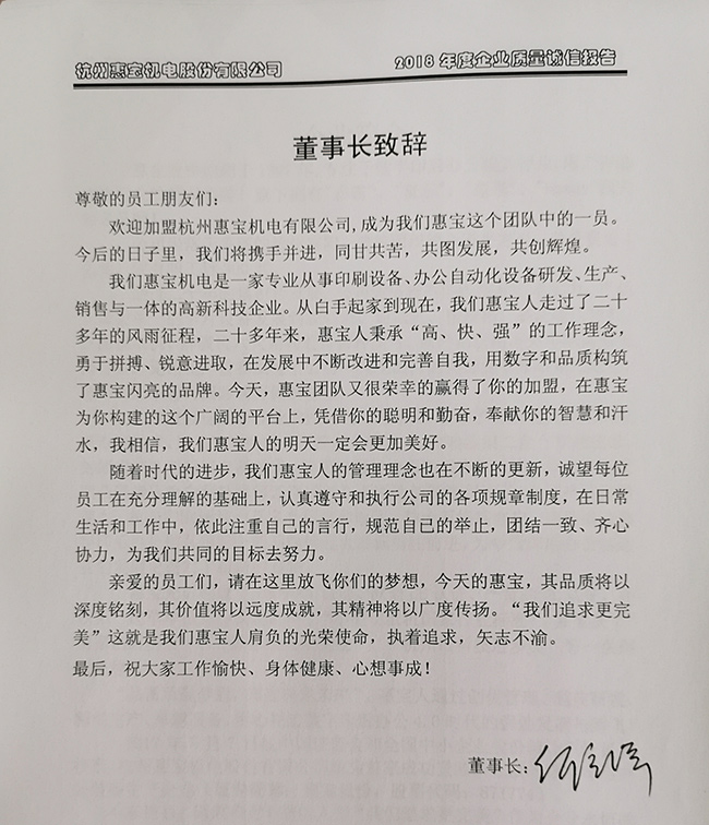 “品質(zhì)承載夢(mèng)想,速度決定未來”,惠寶人通過創(chuàng)優(yōu)管理、超前研發(fā)、精細(xì)生產(chǎn)、卓越服務(wù),用心托起數(shù)字印后辦公4.0時(shí)代的強(qiáng)勁發(fā)展與騰飛!