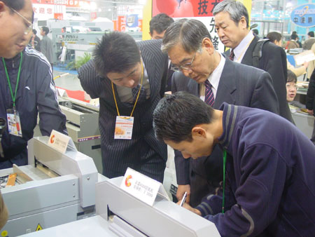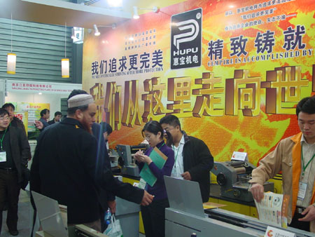 幾天以來(lái),杭州惠寶機(jī)電以龐大的規(guī)模、恢弘的氣勢(shì)、創(chuàng)新的模式博得眾彩,聚焦業(yè)界目光,成為本屆展會(huì)上一道亮麗的風(fēng)景。來(lái)自各地的客商、經(jīng)銷商代表紛紛云集展位,場(chǎng)面火爆,意向客戶眾多。不斷有客戶前來(lái)參觀及詢問(wèn),對(duì)公司現(xiàn)有的膠印機(jī)、激光打標(biāo)機(jī)、無(wú)線膠裝機(jī)、切紙機(jī)、覆膜機(jī)等系列產(chǎn)品表現(xiàn)出強(qiáng)烈的興趣,并有兩百余客戶與我們進(jìn)行了洽談,其中有的客戶當(dāng)場(chǎng)就有簽單的意向。