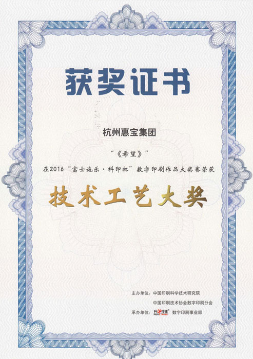 2016年惠寶集團獲得中國印刷技術(shù)協(xié)會-技術(shù)工藝大獎