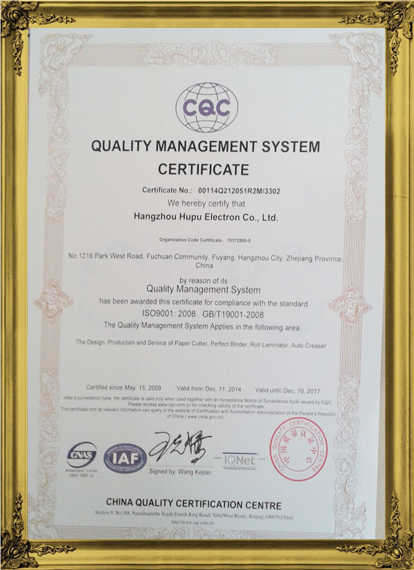 惠寶公司質(zhì)量管理體系認(rèn)證證書-ISO9001