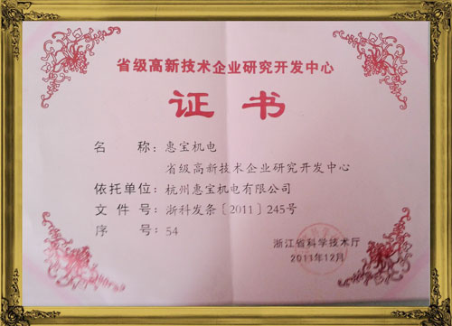 2011年榮獲省級高新技術(shù)企業(yè)研究開發(fā)中心