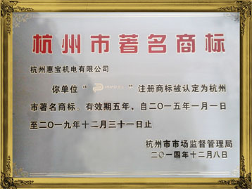 2014年惠寶商標(biāo)榮獲杭州市著名商…