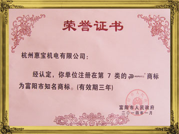 2014年惠寶商標(biāo)榮獲富陽市知名商…